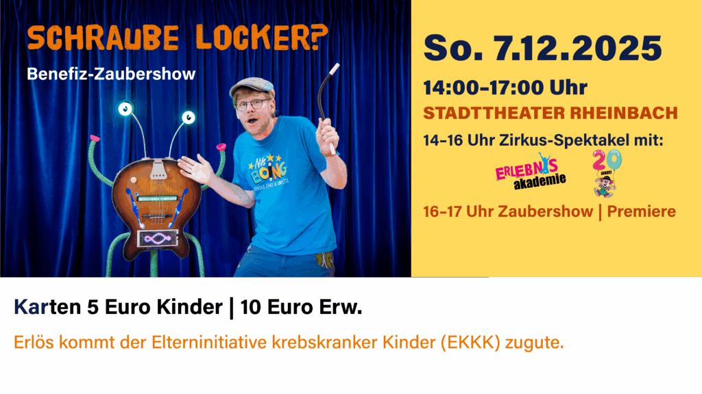 Wo gezaubert wird, da fällt Konfetti! Doch ohne das bunte Chaos wäre Nils Zauberei nur halb so lustig. Authentisch, liebenswert und ein wenig verrückt – das sind die Zaubershows von Nils BOING, hauptberuflicher Kinderzauberer aus Rheinbach bei Bonn. Zauberei von der Stange bekommt ihr bei ihm nicht, denn er ist immer wieder überraschend! Und mit einem lauten BOING geht zur Freude des Publikums auch manches schief.